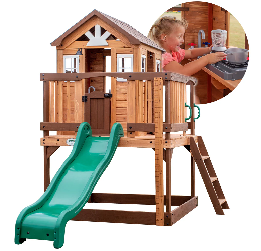 - Elevated Play: Raised playhouse to accommodate compact spaces.
